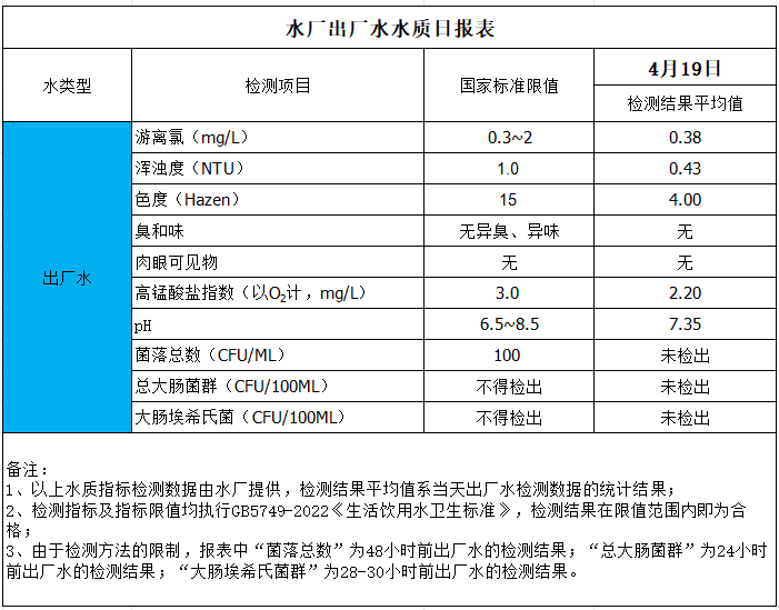 水廠出廠水水質(zhì)日?qǐng)?bào)表(2025-4-19)
