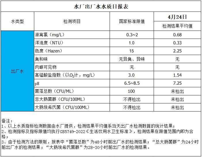 水廠出廠水水質(zhì)日報表(2025-4-24)