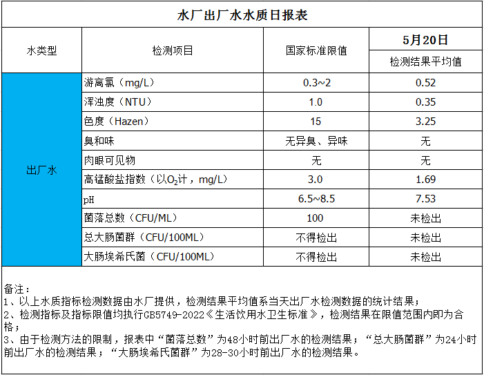 水廠出廠水水質(zhì)日報表(2025-5-20)