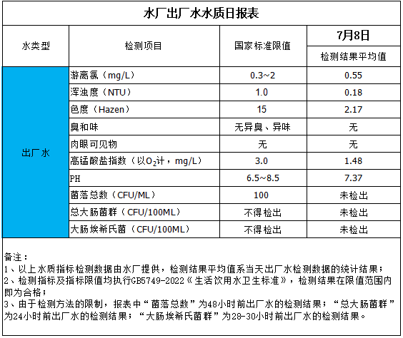 水廠出廠水水質(zhì)日報(bào)表(2025-7-8)