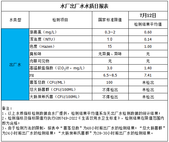 水廠出廠水水質(zhì)日報(bào)表(2025-7-12)