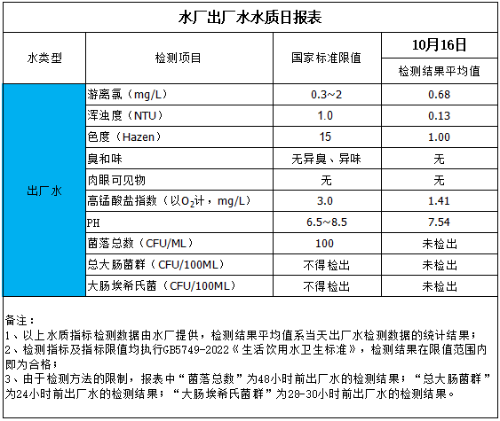 水廠出廠水水質(zhì)日報表(2025-10-16)