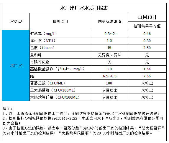 水廠出廠水水質(zhì)日報(bào)表(2025-11-13)
