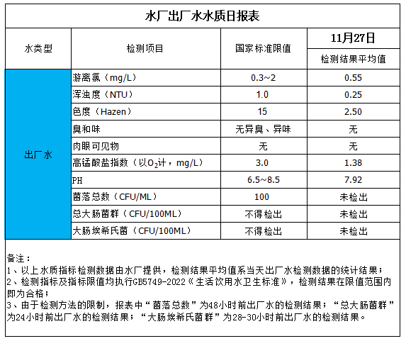 水廠出廠水水質(zhì)日報表(2025-11-27)