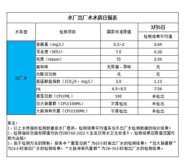 水廠出廠水水質(zhì)日?qǐng)?bào)表(2024-3-5)