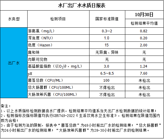 水廠出廠水水質(zhì)日報表(2024-10-30)
