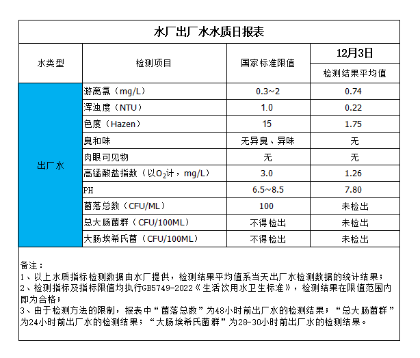 水廠出廠水水質(zhì)日報表(2024-12-3)